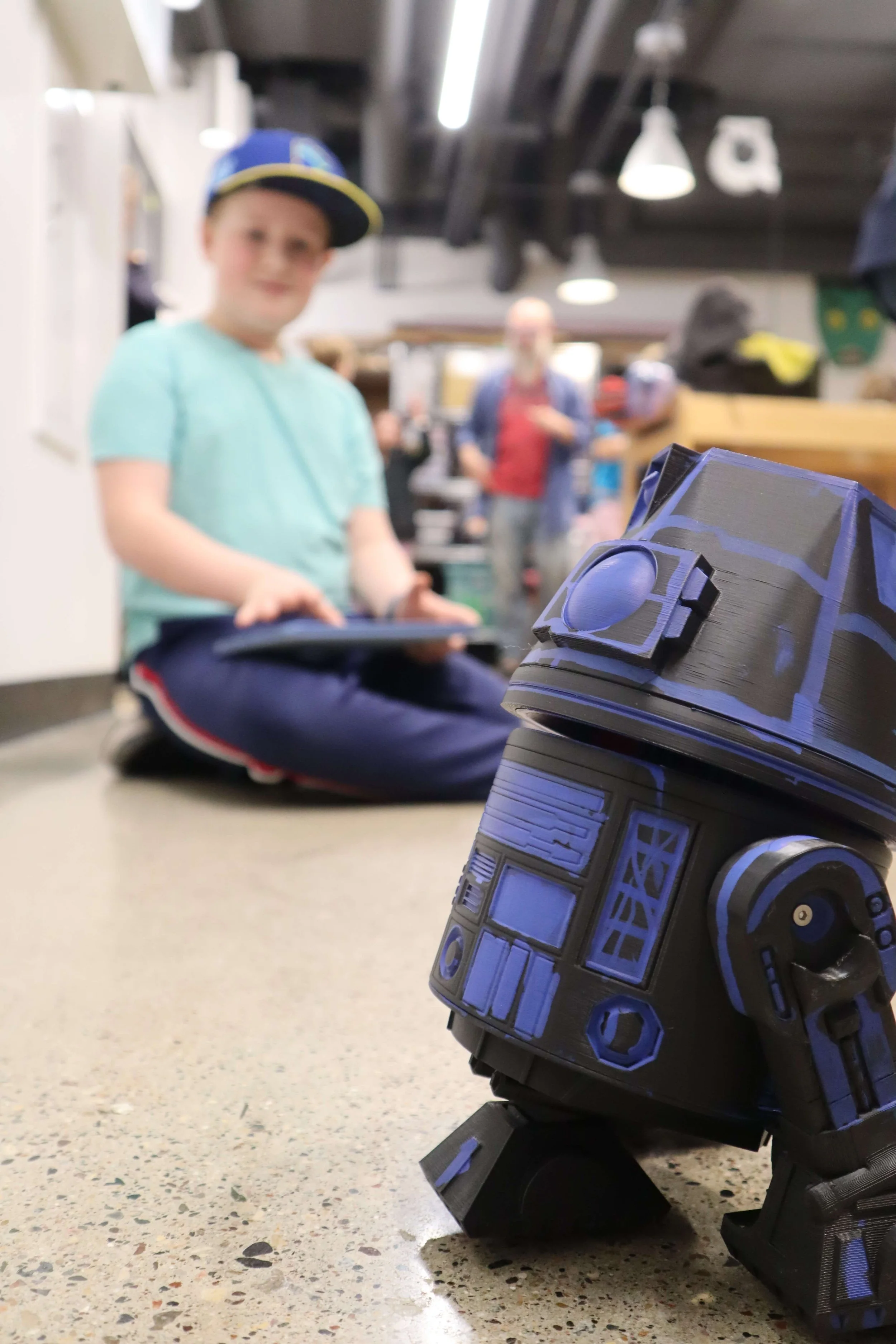 Join us during spring break for a special workshop diving deep into robotics using 3D printed parts! During this session, students will learn about 3D design and printing, circuitry, servos, coding an Arduino, and Bluetooth remote controls. Using 3D printed parts + electronic components, students will build a remote controlled Star Wars inspired robot that they can take home at the end of the workshop!